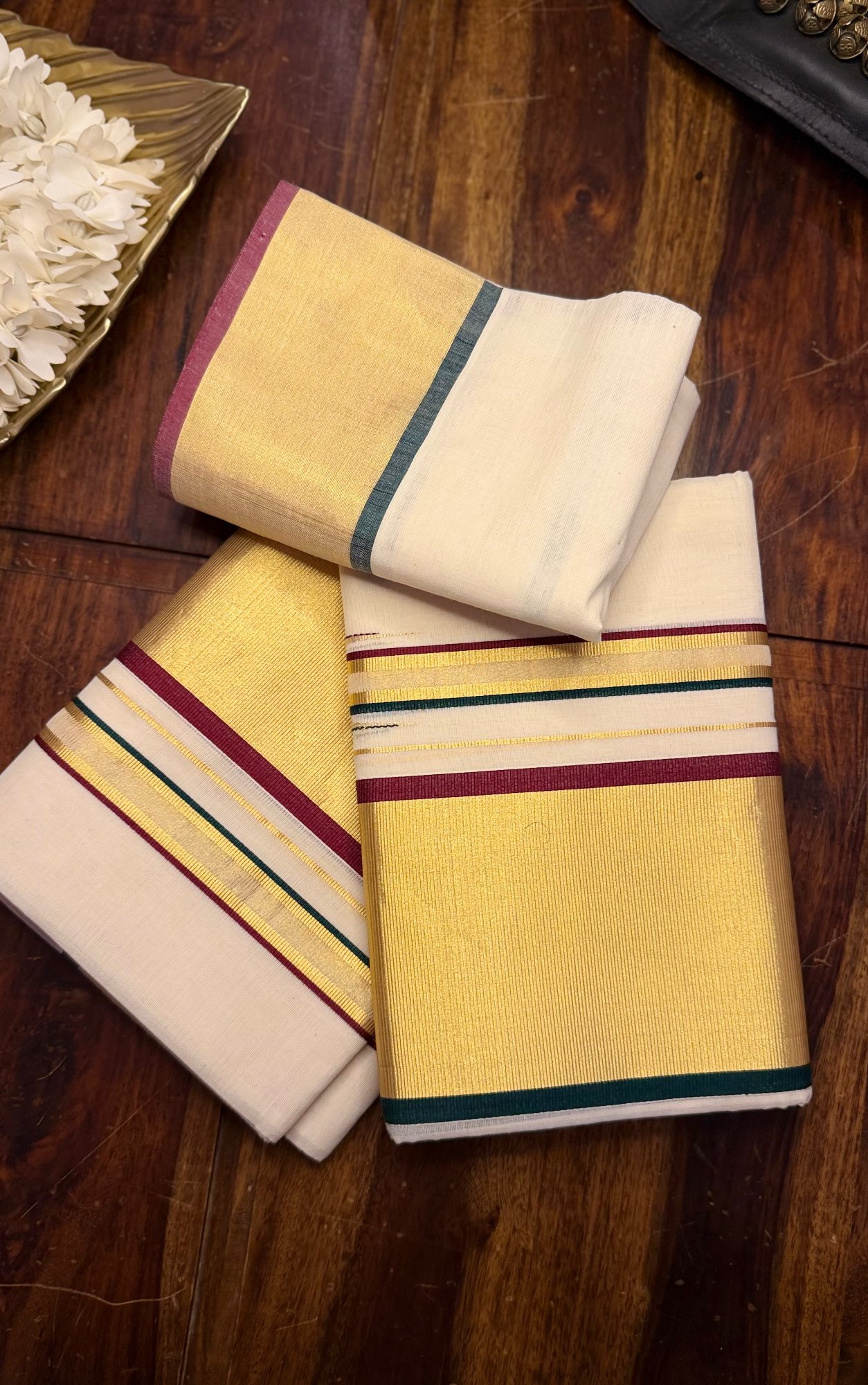 - Style: Traditional Kerala Kasavu Attire