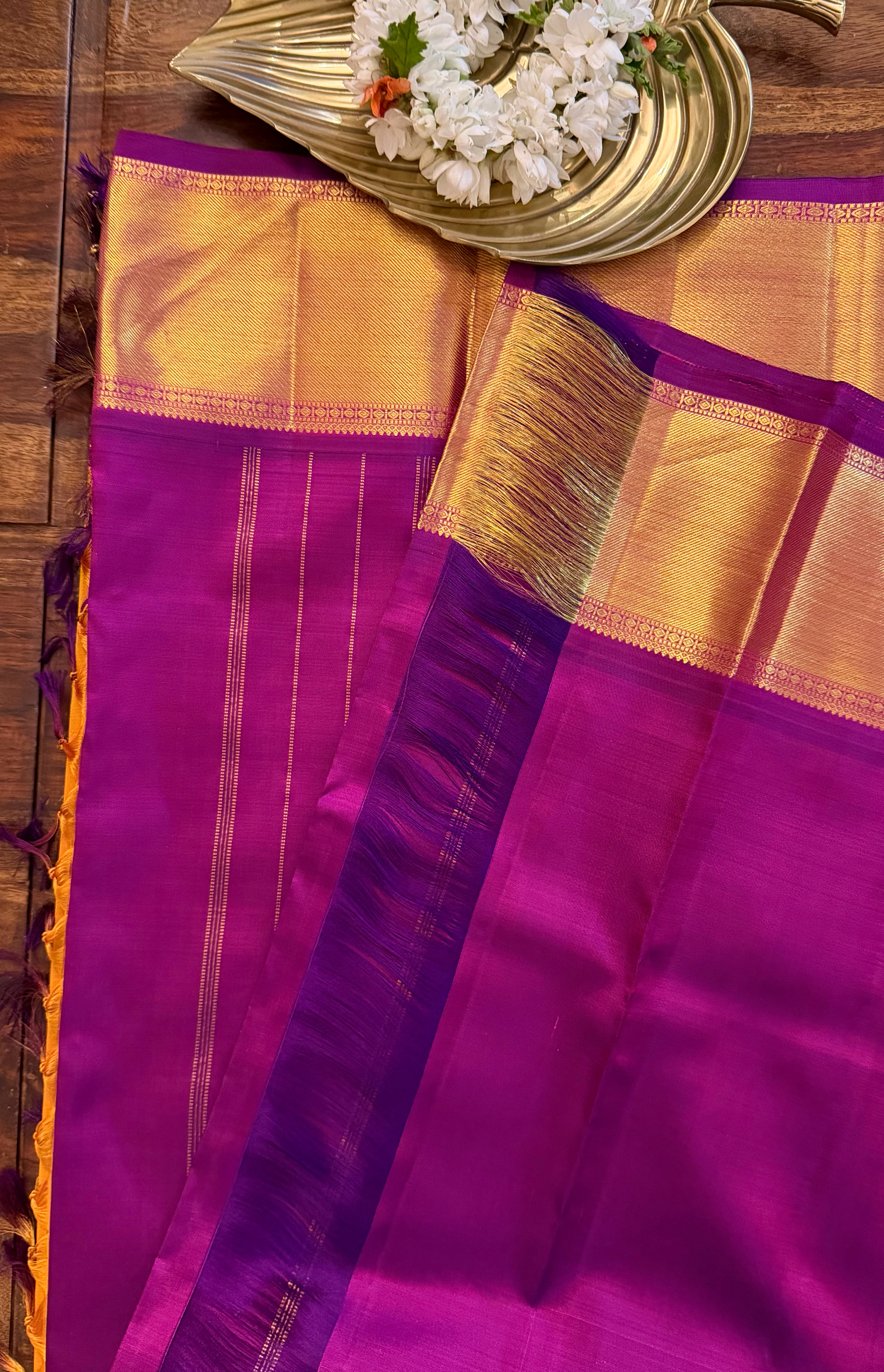 Pure Kanchipuram Silk Saree in Mustard Yellow with Royal Purple Border