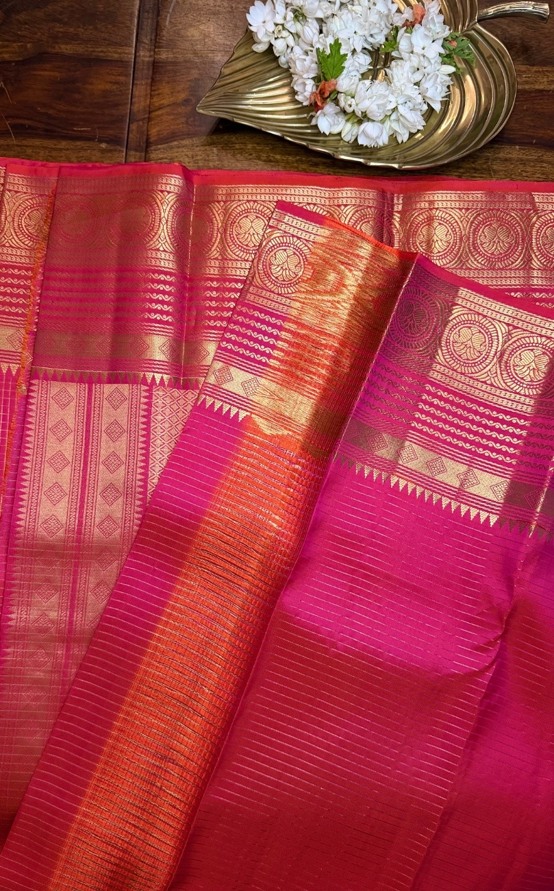 * Border: Varasai Pattu Border (Traditional Gold Zari Border with Temple-Inspired Patterns)